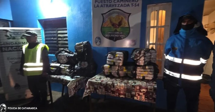 Efectivos de la Dirección de Seguridad Vial de la Policía de la Provincia secuestraron aproximadamente 100 kilos de hojas de coca durante un control vehicular realizado en el puesto La Atravesada, en el departamento Paclín.